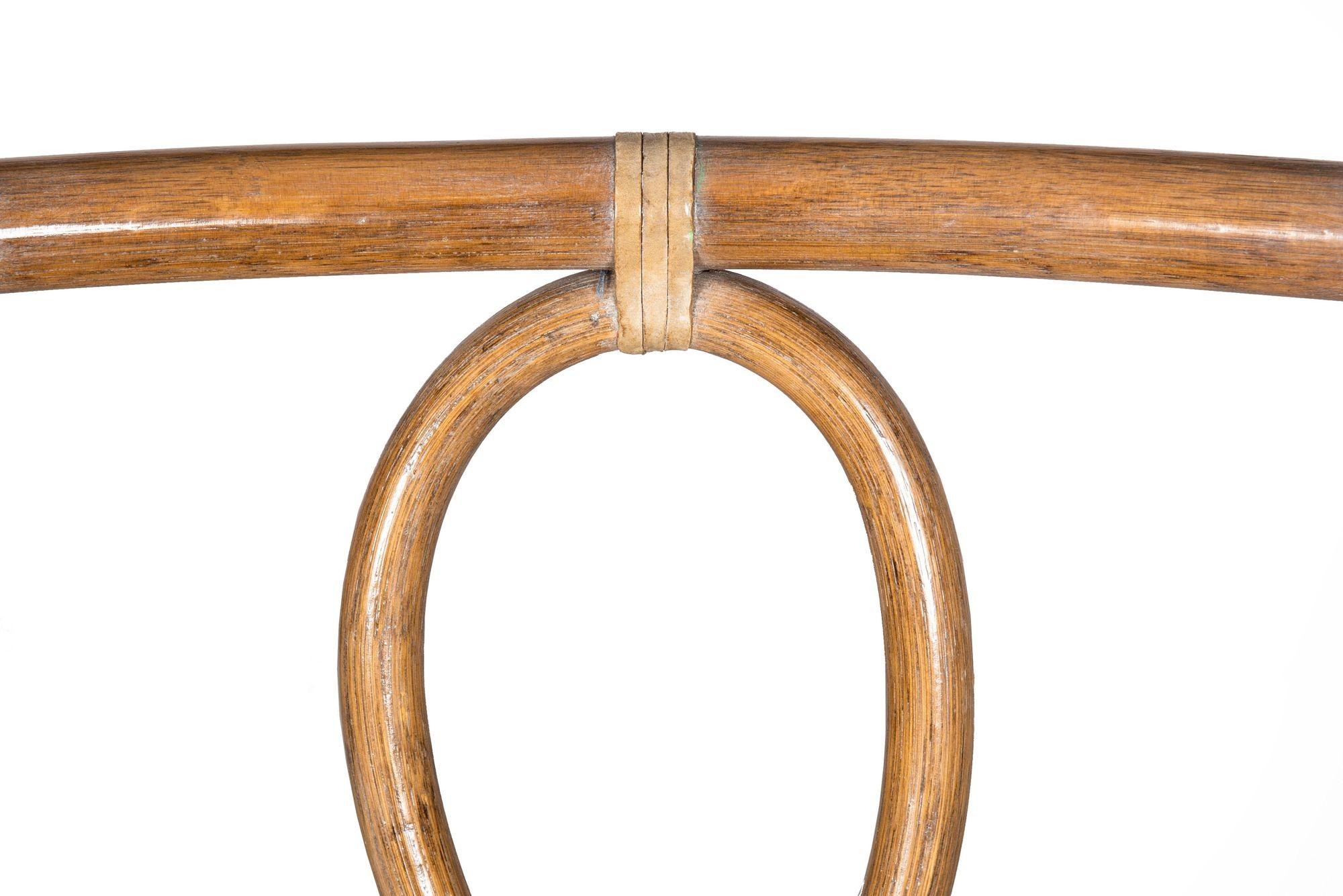 Ensemble de cinq chaises de salle à manger en rotin cérusé avec table en bambou de McGuire