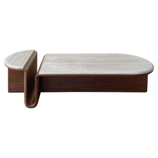 La table basse Arkhe est une gracieuse combinaison de fonctionnalité, de simplicité et de posture sculpturale. La beauté naturelle du travertin, l'artisanat exquis et l'inspiration provenant des magnifiques amphithéâtres d'Olde Time confèrent à cette table un attrait intemporel. Le design joue avec la géométrie pour créer des surfaces uniques qui attirent la vue tout en divisant la surface de la table en zones aux fonctions différentes. La surface inclinée est destinée à ranger et à présenter des livres, des journaux et des magazines, tandis que la surface plane accueille des objets quotidiens tels que des vases, des bougies ou des tasses à café.