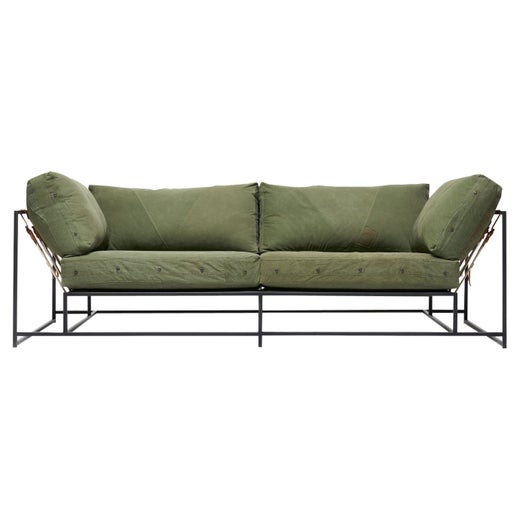 Kenn avait accès à un large éventail de tissus militaires, qui sont devenus l'élément central de sa Collection Héritage. En plus de réutiliser les tissus, Kenn a soudé des cadres en acier rouillé recouverts d'un revêtement de protection. Des répliques de " ceintures de mules ", utilisées à l'origine pour les mules de bât pendant la Seconde Guerre mondiale, complétaient le métal terni et soutenaient le dos de ses canapés .