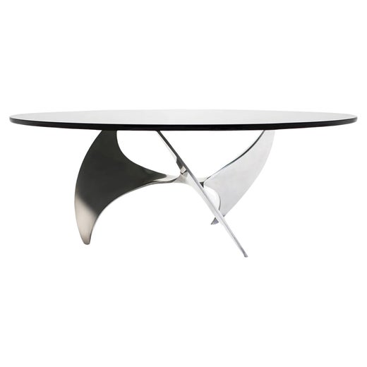 Table basse sculpturale en verre et aluminium Knut Hesterberg
