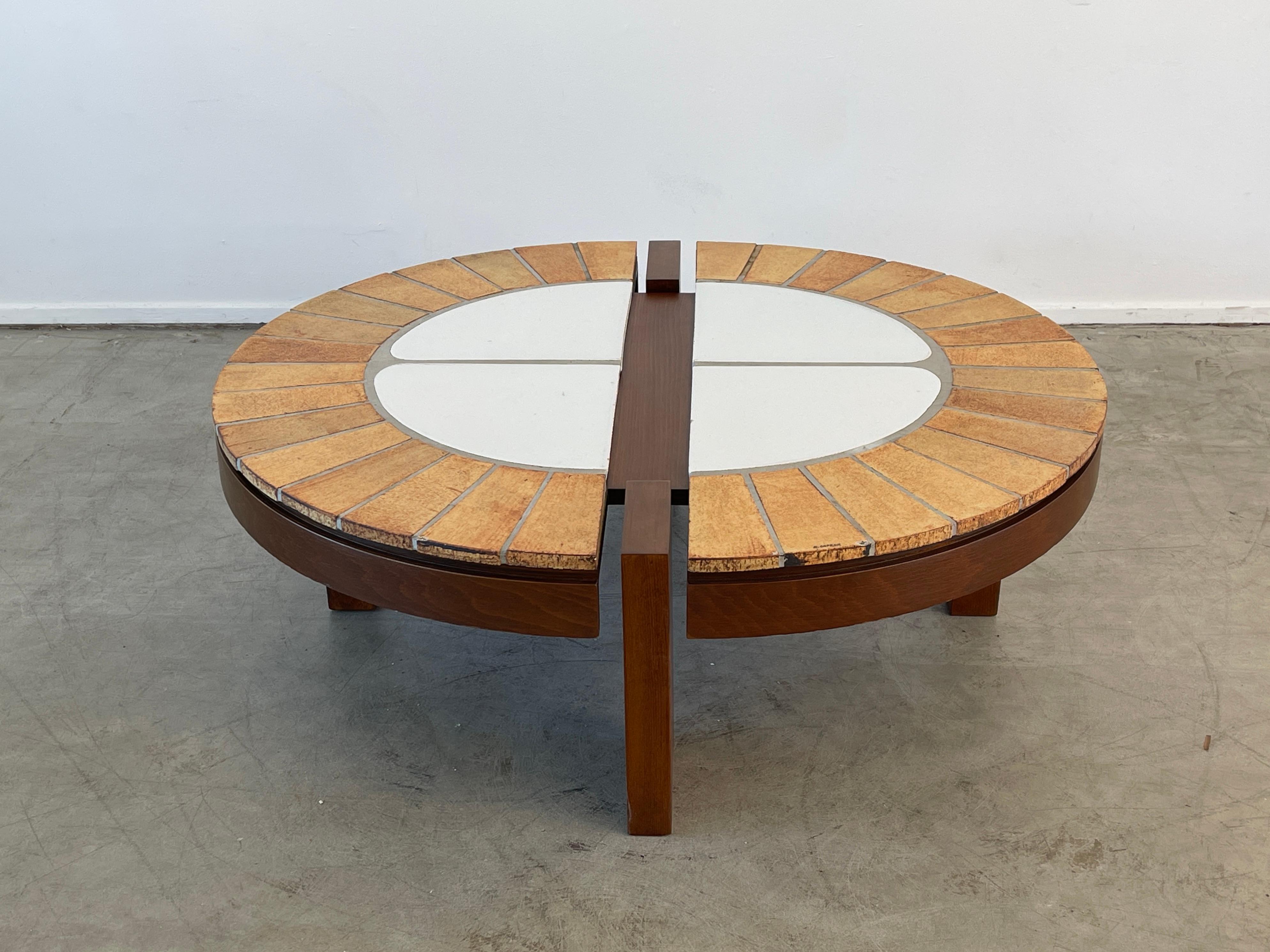 Roger Capron est surtout connu pour ses tables basses aux formes géométriques complexes et aux couleurs vibrantes . Ces meubles du milieu du siècle, avec leurs palettes agréables et leurs arrangements ludiques de formes abstraites ou de motifs du monde naturel, sont accessibles tout en étant sophistiqués. Ils s'inspirent du modernisme scandinave et illustrent la conviction du céramiste parisien de veiller à ce que les objets de beauté soient facilement et largement accessibles, un principe adopté par l'artiste décorateur et designer français René Gabriel.