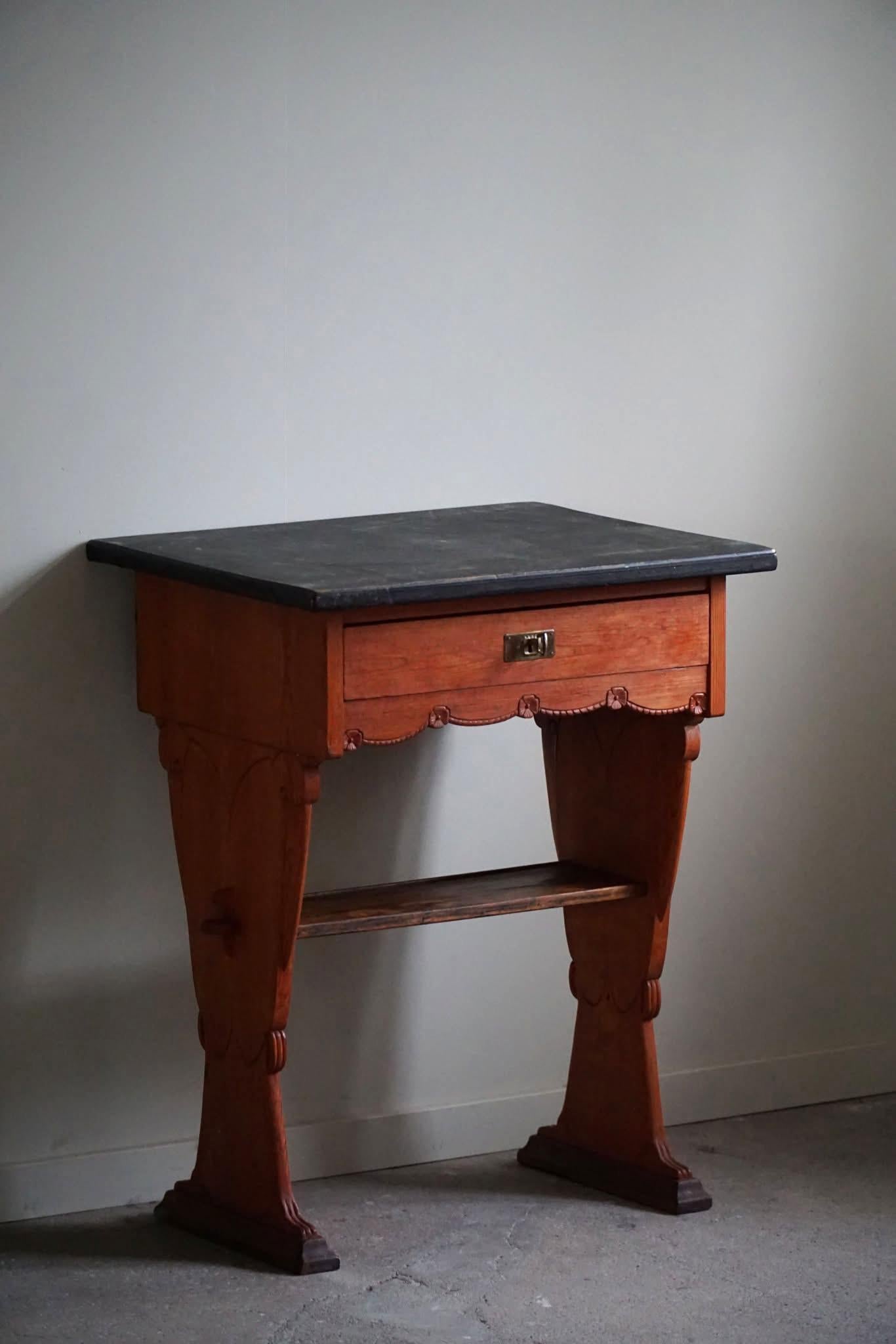 Antique Gustavian Work Table, Genuine Swedish Country Desk Table with Drawer
