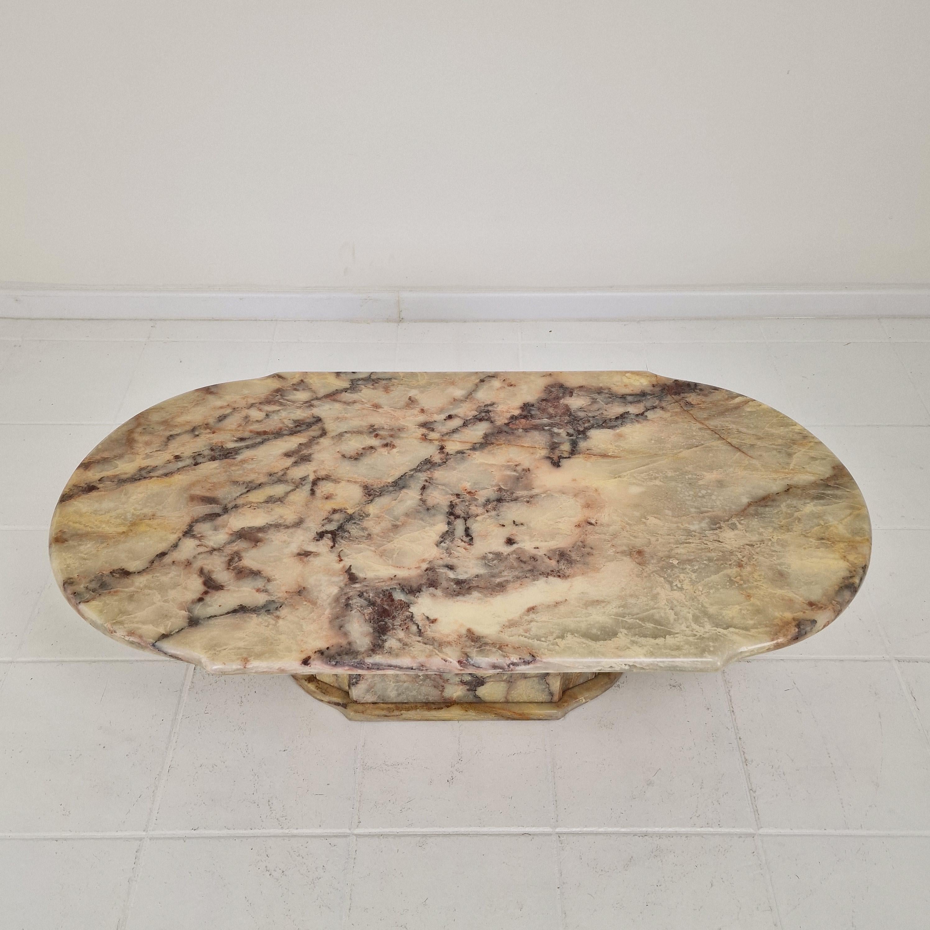 Très belle table basse ou table d'appoint italienne en marbre, fabriquée à la main, années 1970.