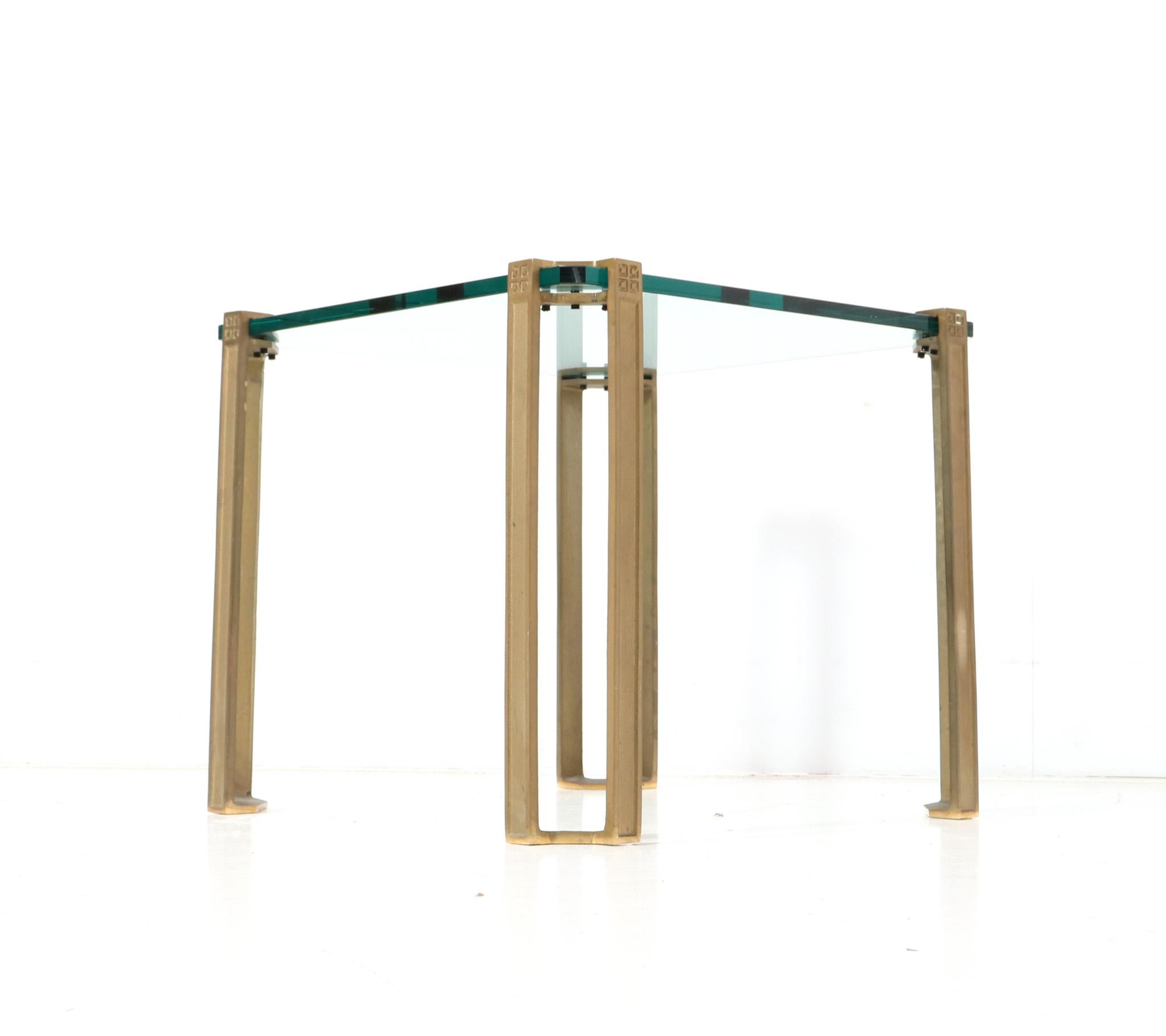 Table d'appoint Hollywood Regency en laiton et verre, conçue et produite par Peter Ghyczy dans les années 1970.