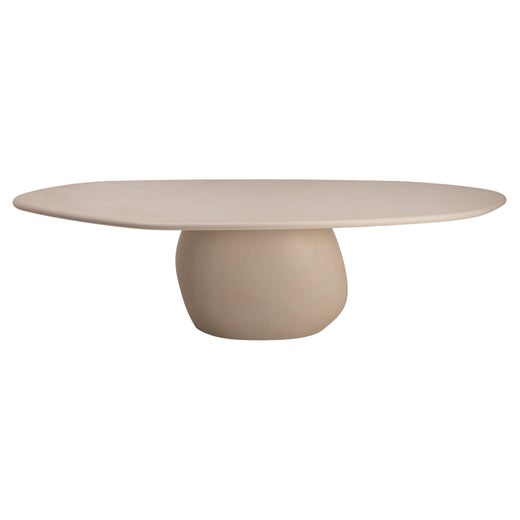Design/One contemporain, table en plâtre naturel fabriquée à la main avec un caractère texturé et terreux.