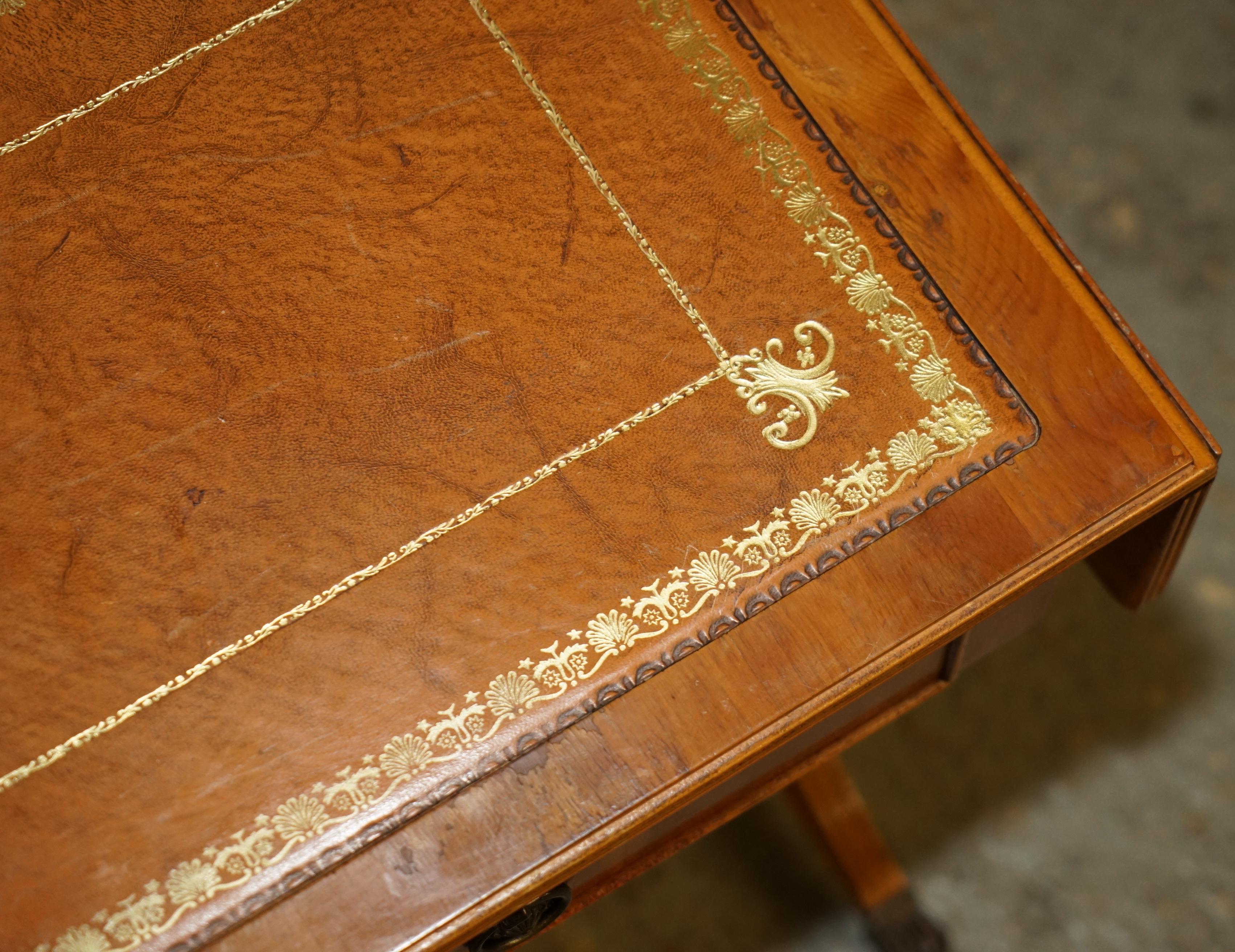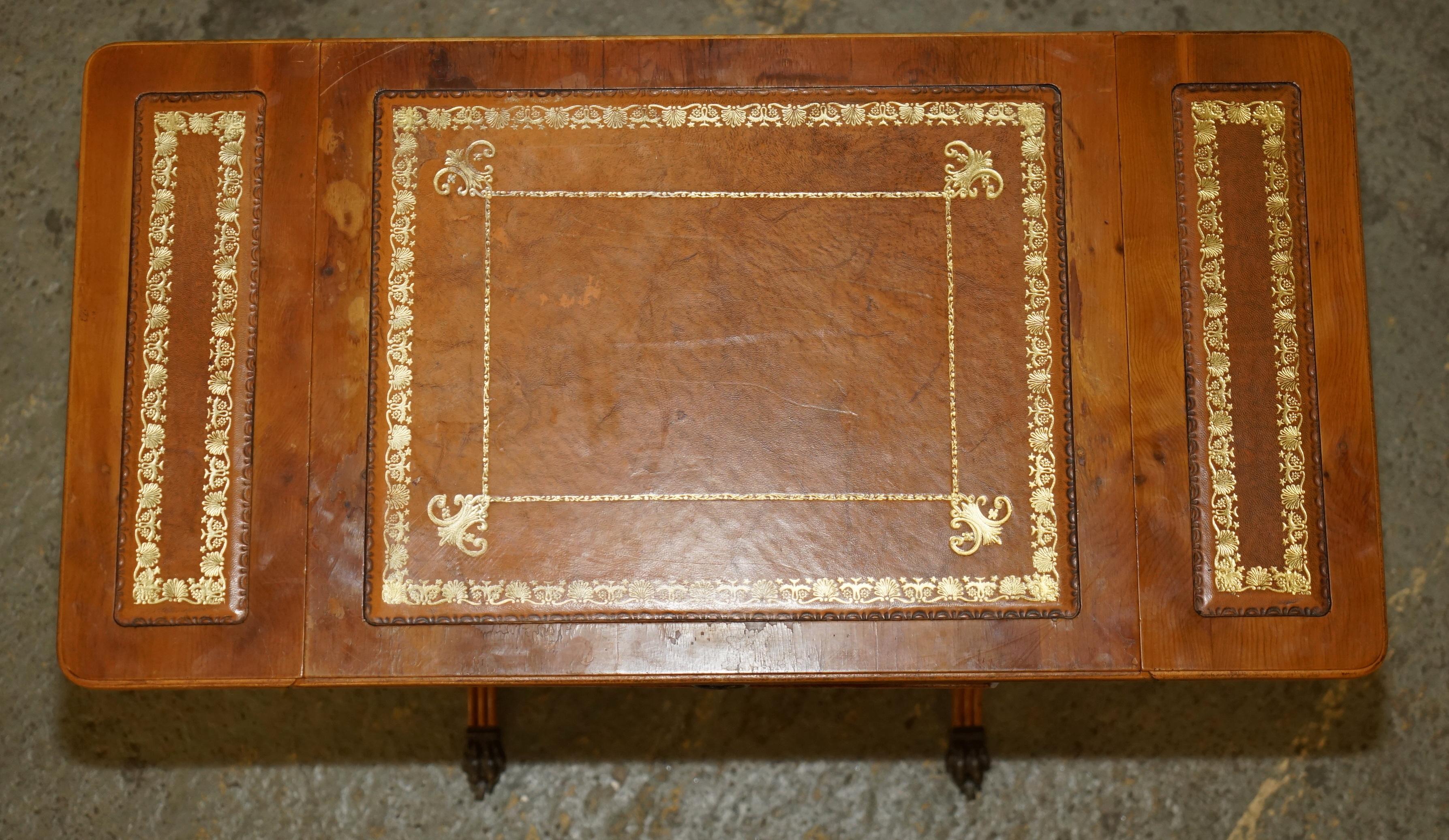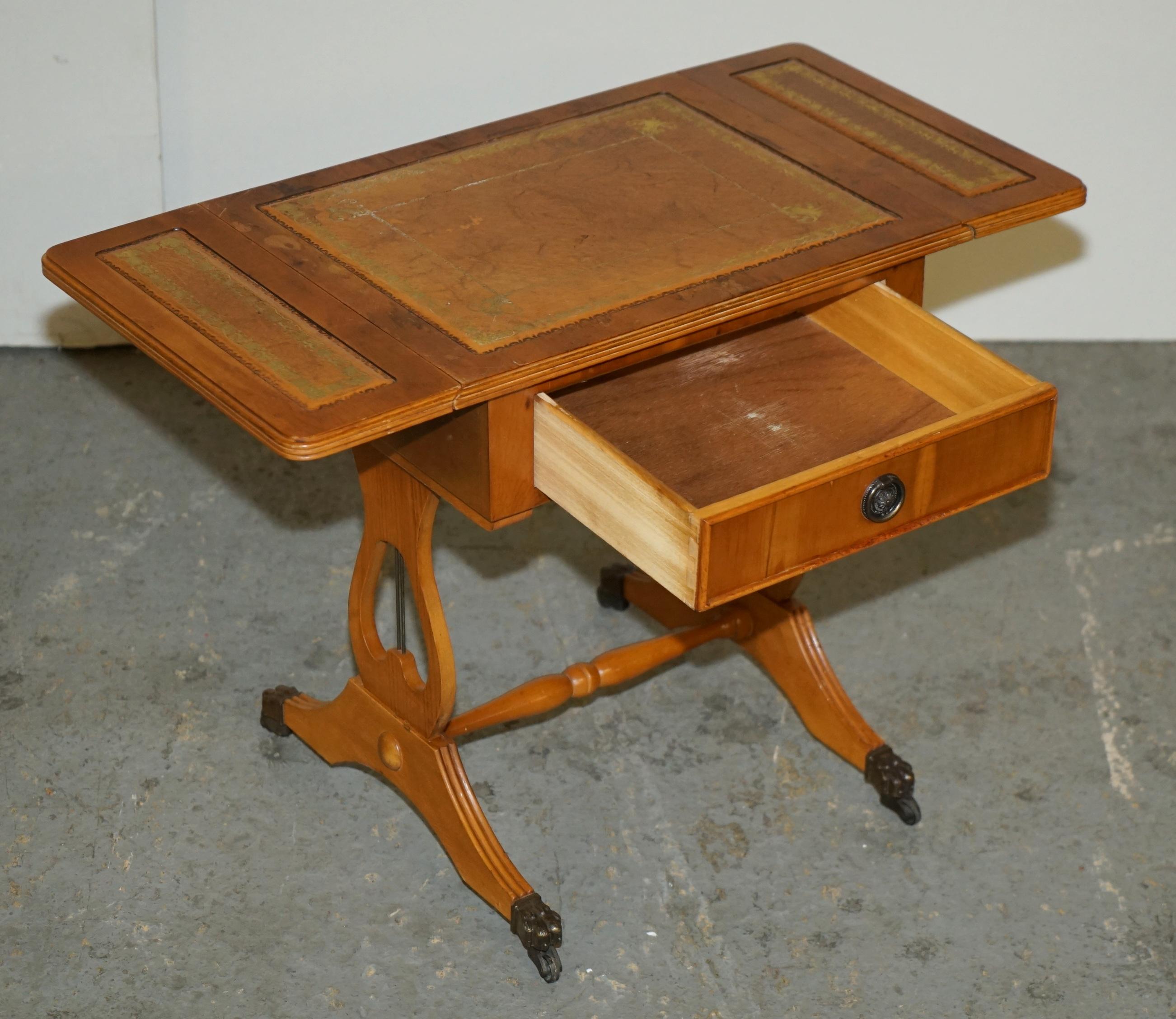 Table d'appoint ViNTAGE BURR YEW WOOD BROWN LEATHER GOLD LEAF ÉMBOSÉ EXTENsible