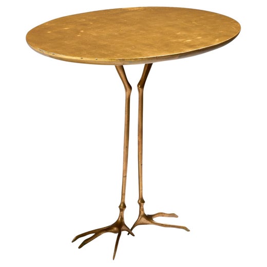 Une autre pièce d'Oppenheim est devenue une icône du genre art-as-design, une catégorie qui a cours parmi les collectionneurs d'art : la table Traccia, une table d'appoint avec un plateau en bois à feuilles d'or ou d'argent, incisé des formes de deux griffes d'oiseaux, et un piètement en bronze moulé en forme de pattes de cigognes. La Traccia - de l'italien "track", comme la piste d'un animal - a été créée pour l'ouverture en 1939 de la première galerie du marchand d'art Leo Castelli, sur la place Vendôme à Paris. Le fabricant Simon International a commencé à produire des versions de la Traccia en 1970, et la pièce est maintenant fabriquée par Cassina. Les exemples sont généralement vendus entre 6 300 et 8 500 dollars, en fonction de leur état. Aussi frappante et amusante aujourd'hui que lors de sa première apparition, la Traccia est un complément toujours indispensable à une collection d'art moderne et de design et un hommage à l'humour et à l'ingéniosité d'un artiste novateur du XXe siècle.