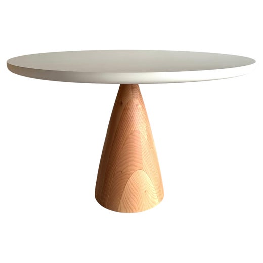 Our Comet dining table is the perfect centerpiece for your space. With a whitened maple table top and solid maple base this piece is stunning in a wide range of decors. The base has been carefully turned in our studio and hand waxed to insure a natural tone.