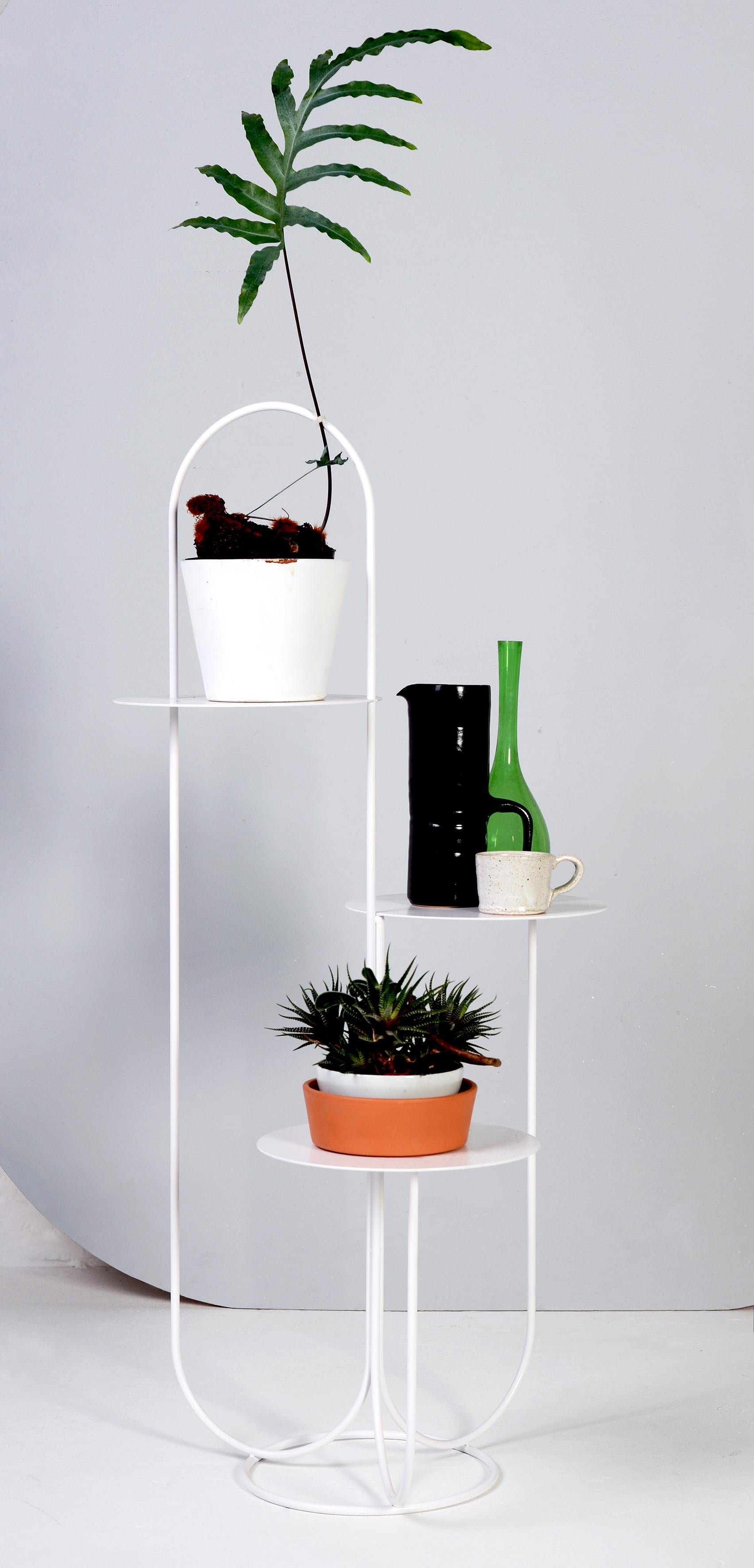 La Trumpet Table est une table d'appoint minimale à trois niveaux conçue par les designers italiens C12+. Ce design élégant et ludique est parfait pour présenter vos plantes et objets, ajoutant une touche de sophistication à n'importe quel coin de votre maison, palier d'escalier ou patio.