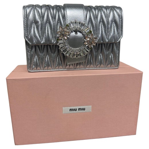 Les sacs à main et porte-monnaie emblématiques de Miu Miu sont optimistes, audacieux et jeunes. La version pailletée Club est l'une des préférées, disponible en cuir matelassé dans des tons neutres, des couleurs vives ou des tons métallisés. Le modèle étincelant et orné Crystal est un modèle à part entière, tandis que le modèle Madras est un modèle classique en cuir structuré.