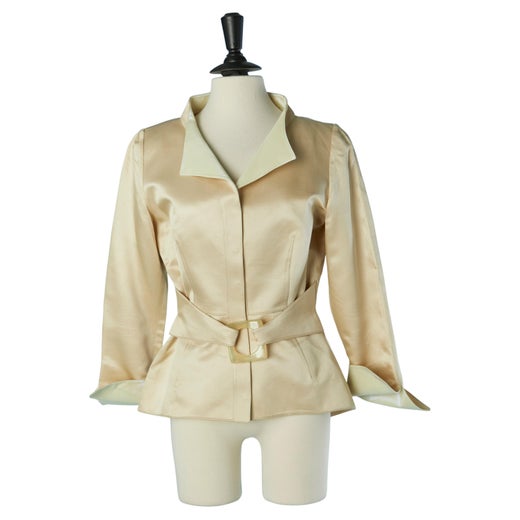 Veste croisée en soie ivoire avec ceinture et boucle Thierry Mugler Couture