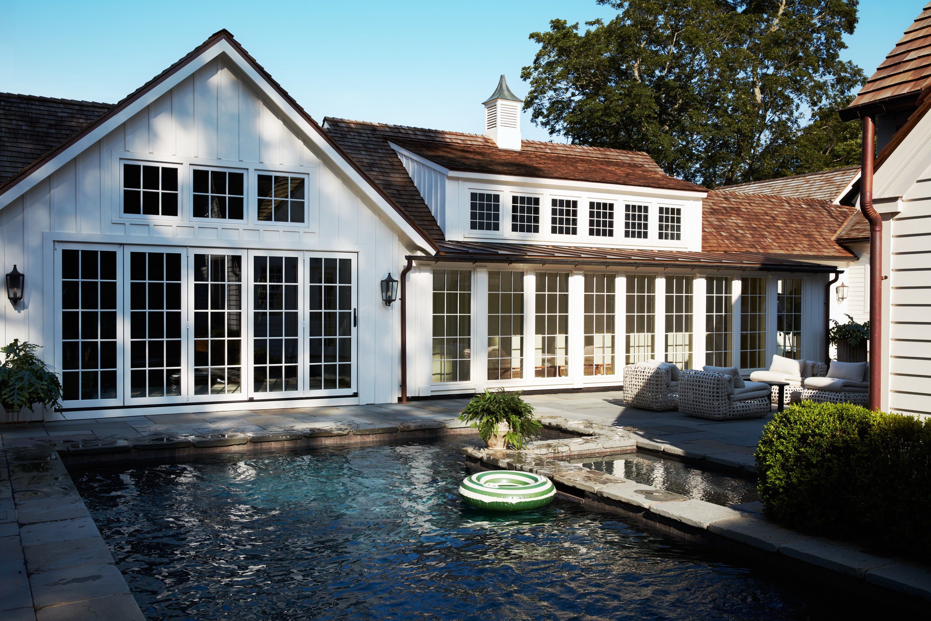 A Manhattan couple seeks refuge and a little bit of funk in the renovation of an 1834 sea captain’s colonial overlooking the Southport Harbor, this expansive colonial cottage is roughly 6,500 square feet with a full home rehabilitation renovation. Full home project scope includes; main entry, kitchen, all bathrooms, the old section of the house, a large staircase, glass breezeway extension to correct flow, as well as the main bedroom suite with an ensuite closet and bathroom, and moody gentlemen’s office.