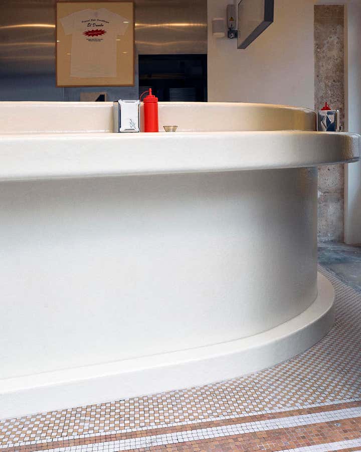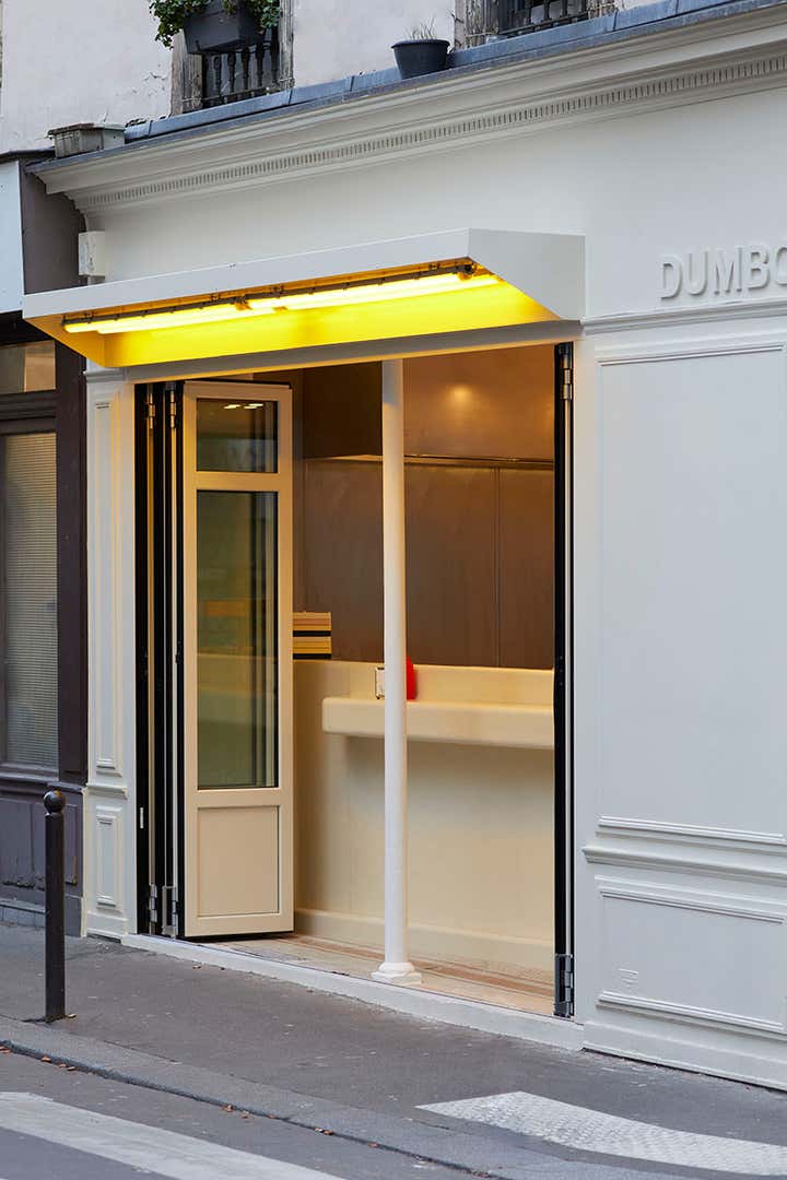 With only two smash-burgers on the menu, Dumbo is a restaurant that relies on focus and precision rather than excess. It is quite natural that the Uchronia studio chose to create a pure, monochromatic yet sculptural space for the new Parisian address of Samuel Nataf and Charles Ganem.