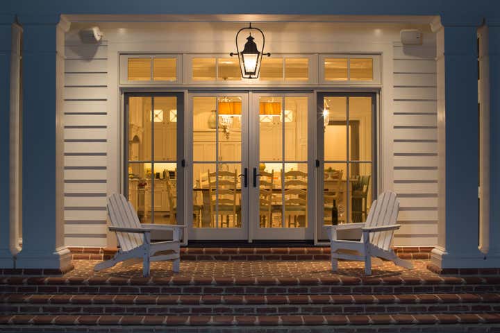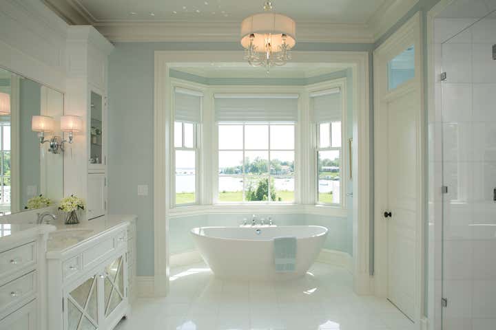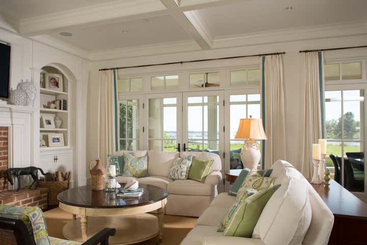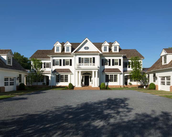 This 10,000 SF, three-story home was designed to ensure that upon opening the door, the waterfront view would be seen. The traditional look and feel of the home is emphasized throughout the interior with raised paneling, millwork, railings and wide wood strip flooring. The backside of the house explodes with the connecting rooms opening up to reveal a 180-degree view of the waterfront.