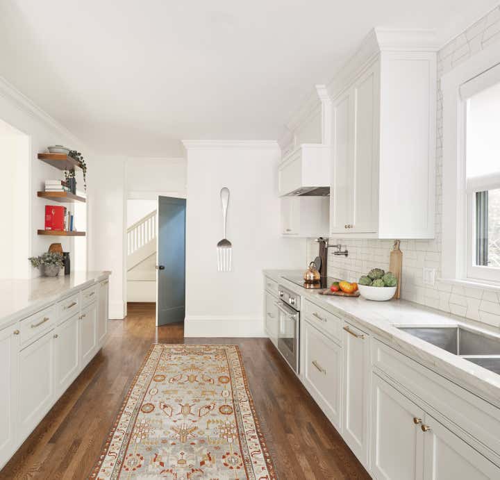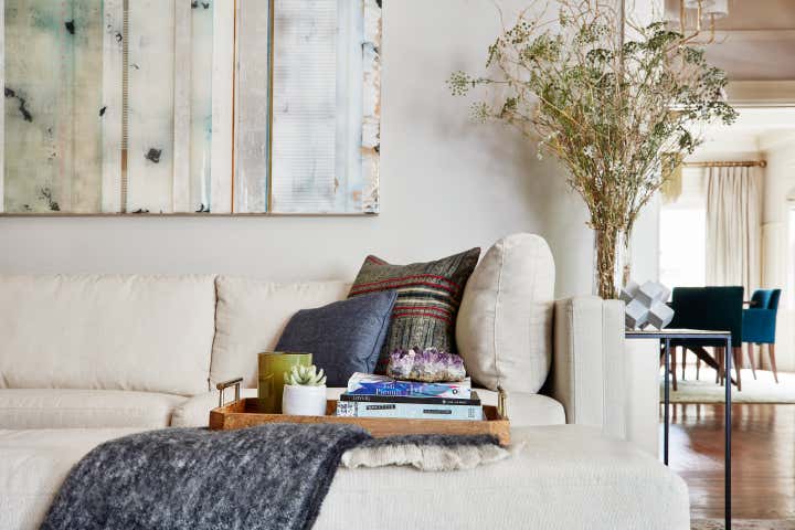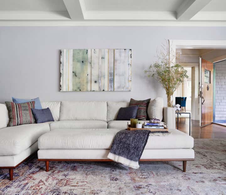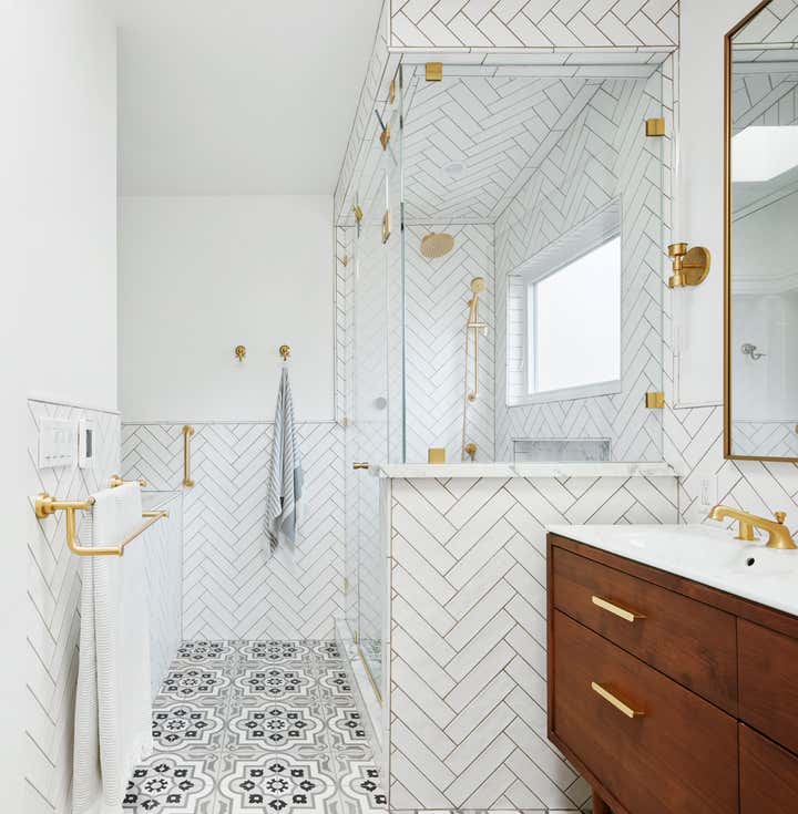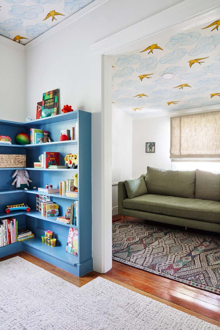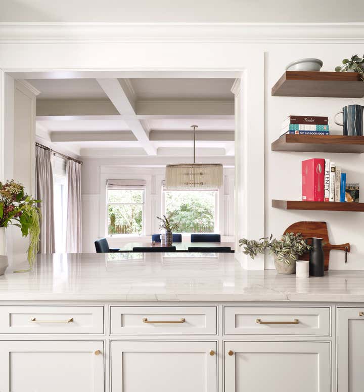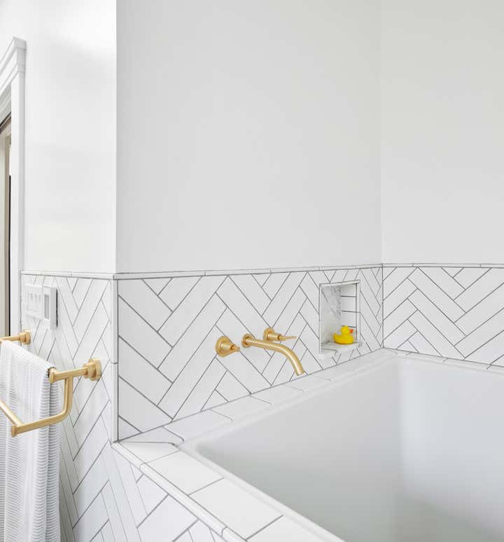 We worked hard to honor the vintage details of this 1910 three-story Craftsman home including large windows, box ceilings, wainscotting, and a dramatic staircase, while also making the home work for this modern family. Updates included creating a pass-through between the kitchen and dining room thus making the space feel more expansive while also honoring the ceiling detail. In the bathrooms, we embraced vibrant patterns and colors. When sourcing furniture we balanced function with form, favoring durable materials that could stand up to the rigors of young children.