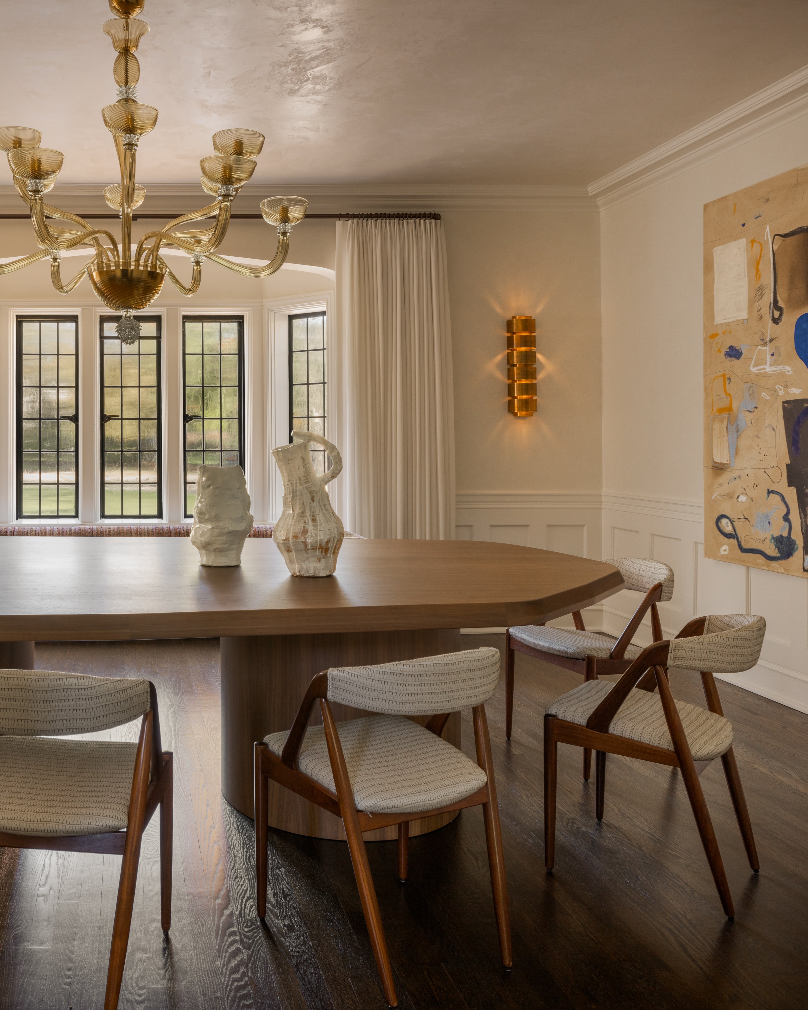Set in the beautiful North Shore of Chicago, this stately 1920's English Tudor was reimagined with a full renovation of both the interior and exterior of the home. Being mindful of the need to modernize and update without sacrificing original character and charm, we opted for a palette very much in keeping with what would have existed during the period in which the original home was designed and built. Shades of muted tobacco, sage green with walnut cabinetry and marble finishes bring a modern yet traditional sensibility to the updated spaces. Furnishings include blue chip artworks, contemporary works, modern sculpture and custom lux upholstery.