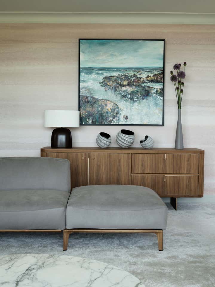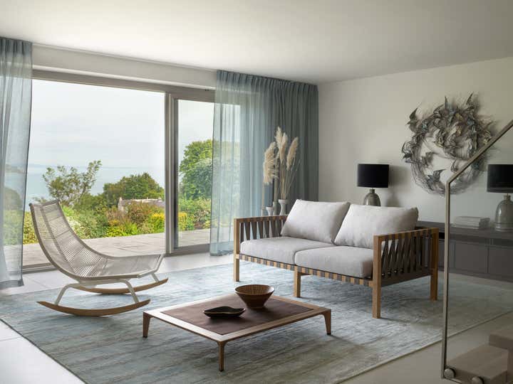 The brief was to develop a design concept for the three-storey contemporary building highlighting the living room and dining area in particular. The clients were looking for a minimalist approach to the overall project and asked the creative team to come up with a calming, tranquil and airy design. The O&A London team, led by Anna Agapova and Oleg Klodt, made it their mission to create a ‘tranquil sanctum’ for the young family. During the initial conversations the idea emerged of an interior reflecting the abundant natural beauty of the local area inside their home, hence the dreamy pastels of the nearby sandy beaches and the soft greens of the Devon cliffs and hill tops were to feature prominently in the design.