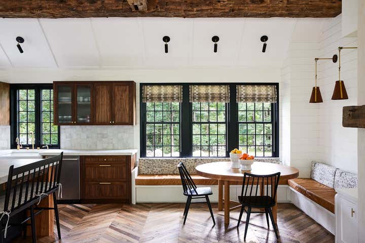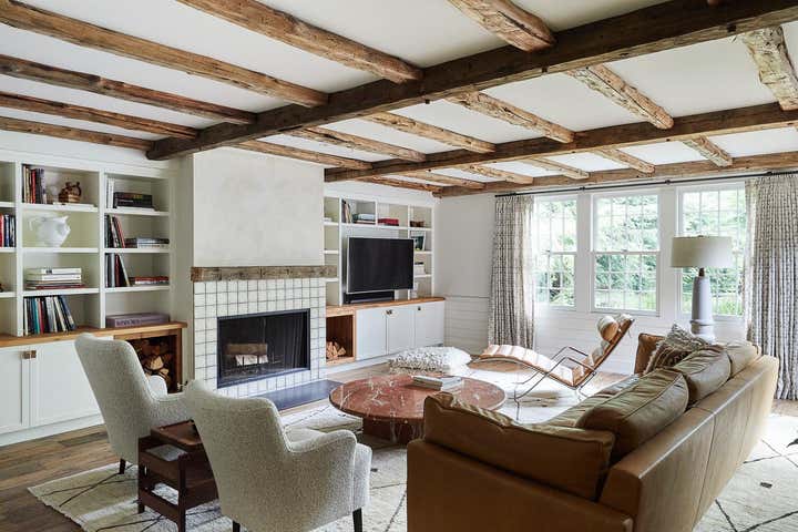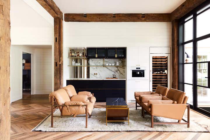 We were brought on to create the interiors for the owners’ new home in Weston, CT after the family of four (plus two goats) decided to leave their Tribeca home in favor of a historic farmhouse outside the city. Built in 1790 with a series of additions over the years, we worked to recreate and reconnect the original assemblage of homes on the property. Connecting them, we inserted shiplap on walls and windows to create the sensation of a bridge linking the two houses. We worked with a combination of local brands, vintage pieces, and collectible design items to furnish the space to appeal to the owner’s relationship to the historic home and location as well as their discerning design palate.