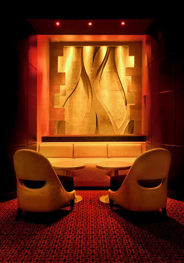 Tribute to Parisian nightlife icons. Gilbert and Thierry Coste gave carte blanche to Charles Tassin to give back to their iconic Night Club all his pomp. Providing a very special care to lighting, Charles Tassin draws his inspiration from the eccentric billionaire Charles de Beistegui and his mythic « Bal du siècle » whose surrealist decoration still fascinate by its mystery and sensualism.