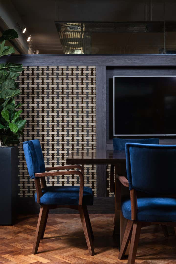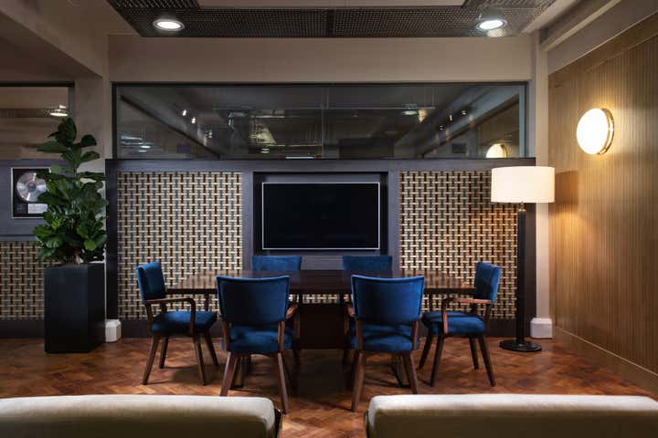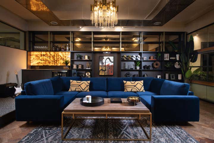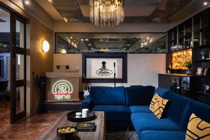 This project aimed to transform this space into a versatile, non-corporate creative space serving as an office, entertaining area, and artist lounge for a record label. A layered approach with natural materials, warm metallics, and ambient lighting was employed, resulting in a relaxed luxury aesthetic conducive to the client and their artists.