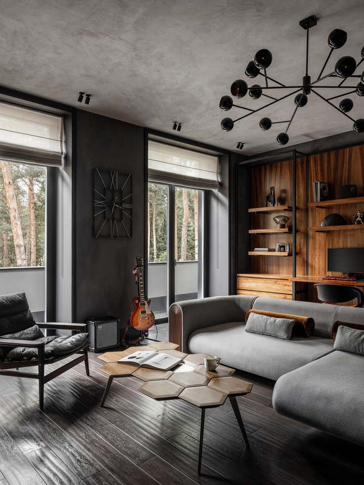 The clients are a large family who wanted to create a home that would be their main place of residence. The most important request was to create comfortable spaces suitable for the whole family to spend time together. The other requirements were the sports area, spa and wine cellar. It is impossible to assign it to any one specific style as it contains everything from art deco to urban style.