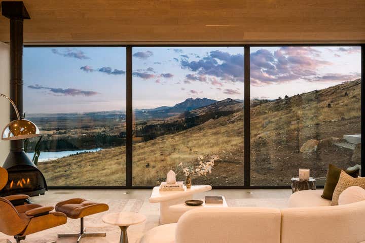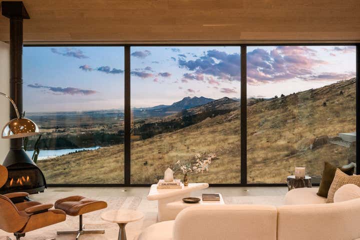 A true architectural tour de force, this newly completed Mountain Ridge estate redefines modern luxury against one of Boulder’s most breathtaking natural backdrops. Designed by award-winning Studio B, with interiors by Studio Brother John and landscaping by Evoke, this striking residence rests on a premier, private three-acre lot bordered by over 6,300 acres of protected open space in the gated Mountain Ridge community. Floor-to-ceiling architectural-grade windows frame unobstructed vistas stretching from the Flatirons to Pikes Peak, the Denver skyline and the eastern plains, immersing every space in light, sky and landscape. The expansive layout offers en-suite baths throughout, an inspiring office or lounge and a flexible lower level ideal for fitness, media or recreation. Interiors showcase globally sourced finishes, including European white oak floors from France, sculptural Cocoon fixtures from Holland, custom white oak cabinetry by BKI Millwork and a chef’s kitchen appointed with Gaggenau and Miele appliances. Outdoor living is equally extraordinary, featuring a dining deck, stainless steel hot tub and sunken conversation pit perfectly positioned for sunrise and sunset views. Sustainable, intelligent and impeccably crafted by Morningstar Homes, this residence is more than a home — it is a refined expression of design, privacy and Boulder’s unmatched natural beauty.