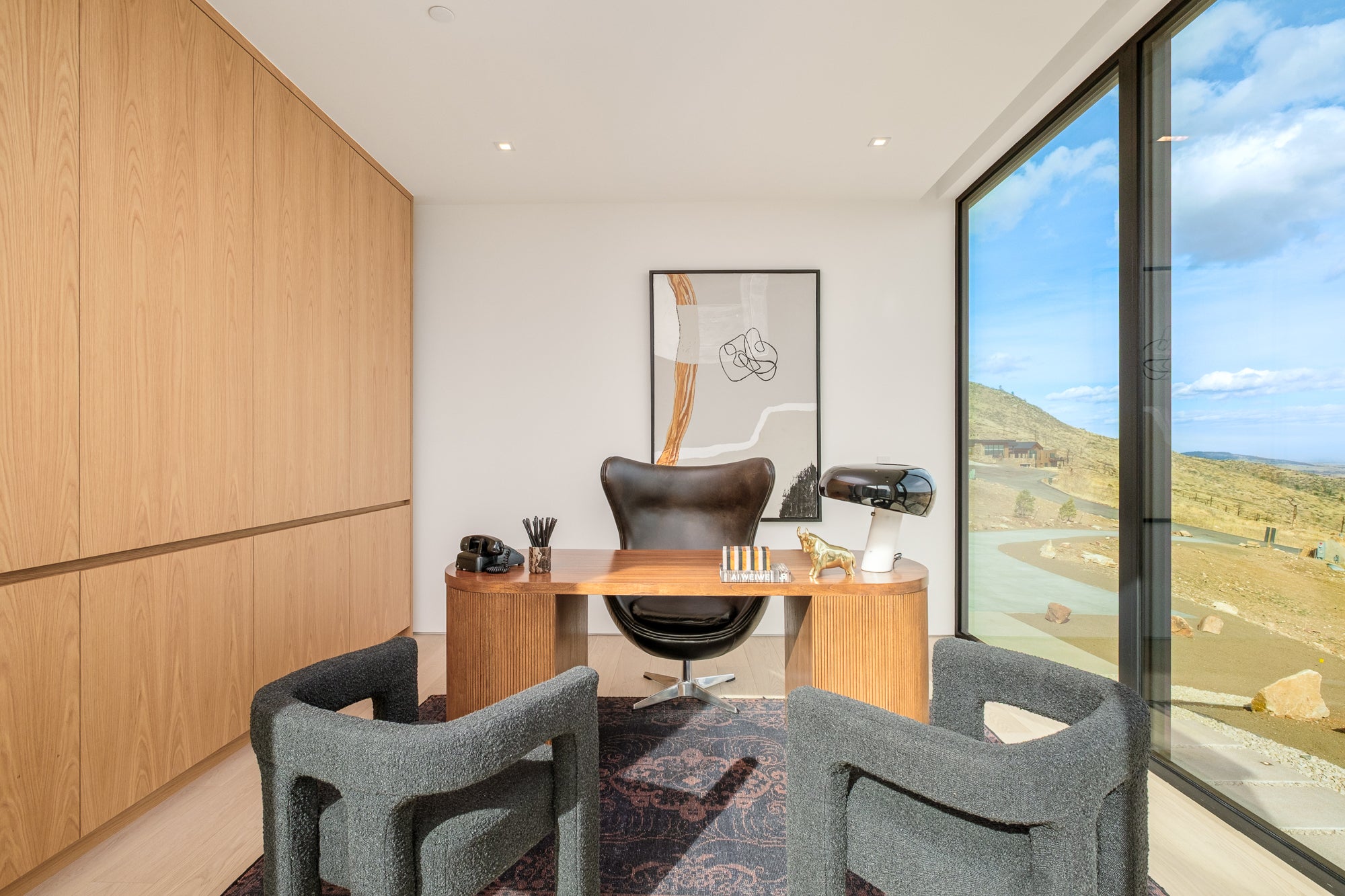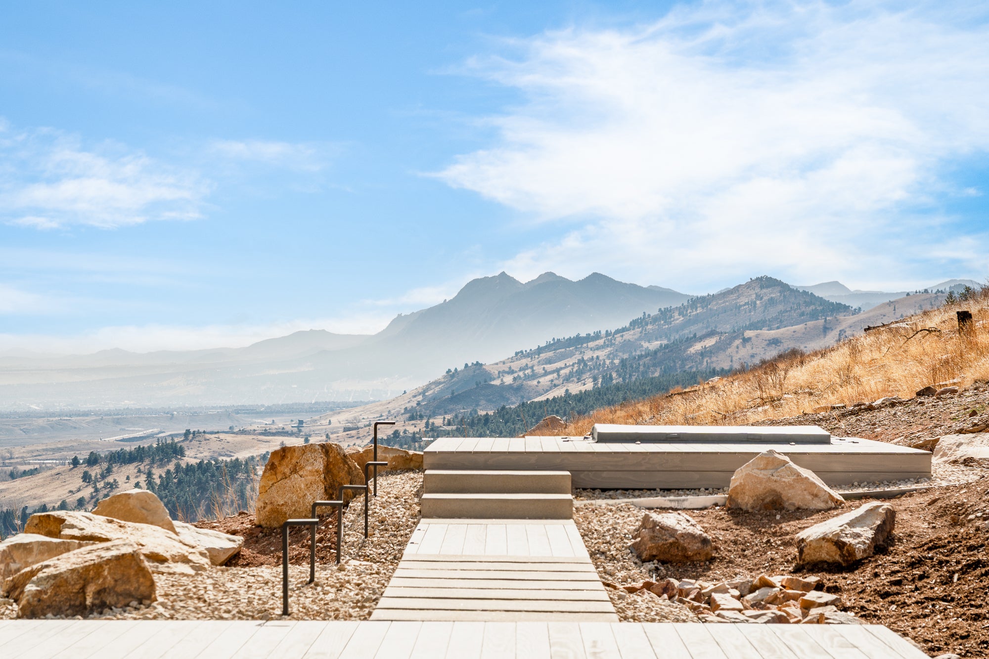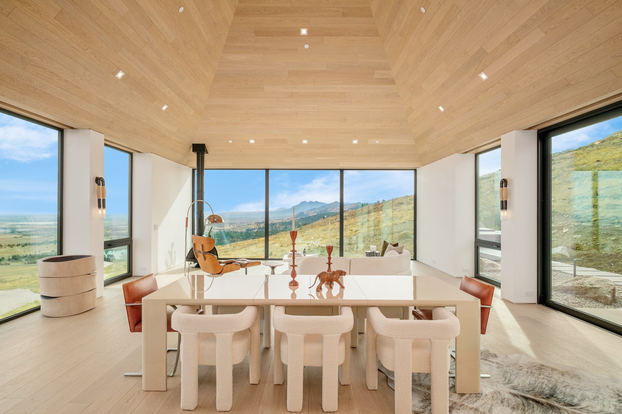 A true architectural tour de force, this newly completed Mountain Ridge estate redefines modern luxury against one of Boulder’s most breathtaking natural backdrops. Designed by award-winning Studio B, with interiors by Studio Brother John and landscaping by Evoke, this striking residence rests on a premier, private three-acre lot bordered by over 6,300 acres of protected open space in the gated Mountain Ridge community. Floor-to-ceiling architectural-grade windows frame unobstructed vistas stretching from the Flatirons to Pikes Peak, the Denver skyline and the eastern plains, immersing every space in light, sky and landscape. The expansive layout offers en-suite baths throughout, an inspiring office or lounge and a flexible lower level ideal for fitness, media or recreation. Interiors showcase globally sourced finishes, including European white oak floors from France, sculptural Cocoon fixtures from Holland, custom white oak cabinetry by BKI Millwork and a chef’s kitchen appointed with Gaggenau and Miele appliances. Outdoor living is equally extraordinary, featuring a dining deck, stainless steel hot tub and sunken conversation pit perfectly positioned for sunrise and sunset views. Sustainable, intelligent and impeccably crafted by Morningstar Homes, this residence is more than a home — it is a refined expression of design, privacy and Boulder’s unmatched natural beauty.