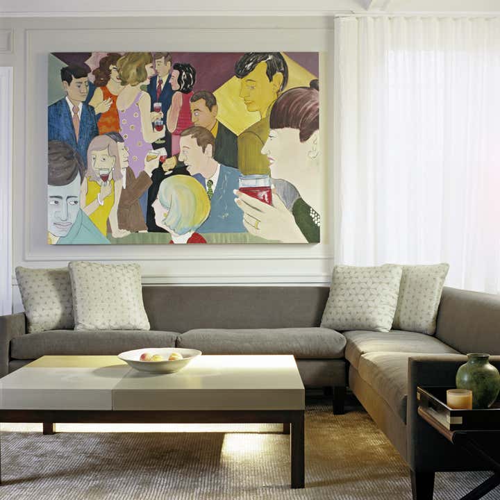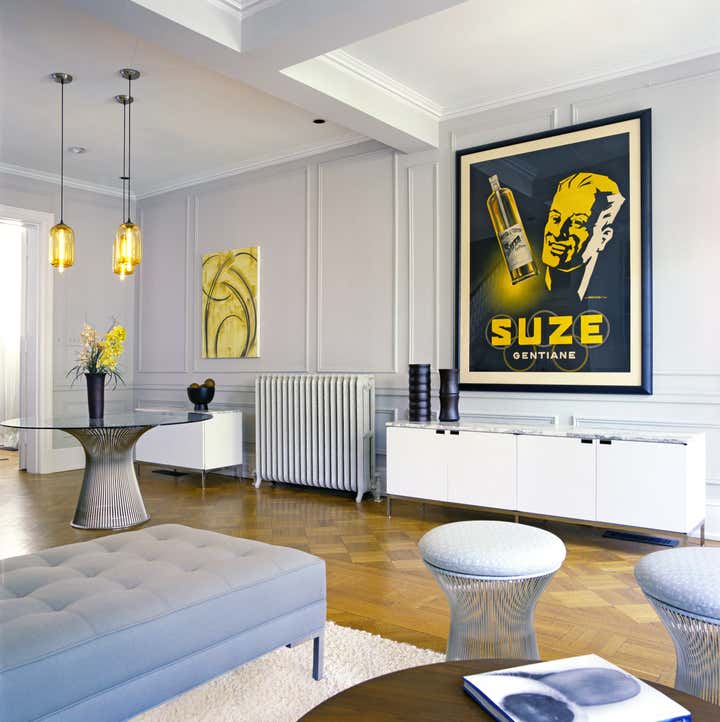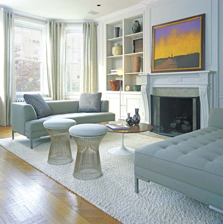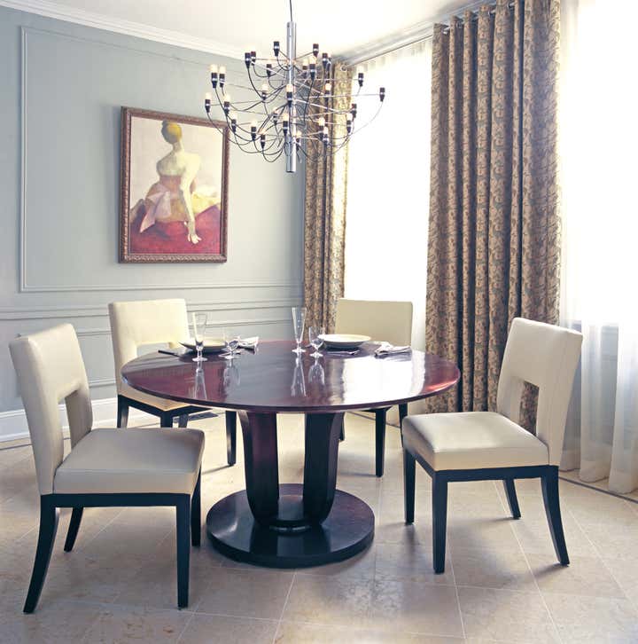 We took a very large, traditional townhouse in Kalorama and modernized it through unifying, monochromatic paint and furnishings allowing the artwork to pop. Ornate moldings and fireplaces were celebrated but not highlighted to allow for more modern living. Custom draperies throughout softened the look providing a warm home in which to entertain.