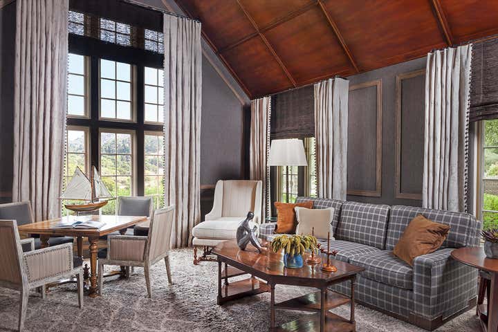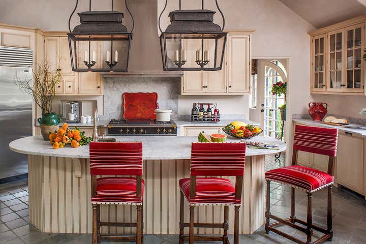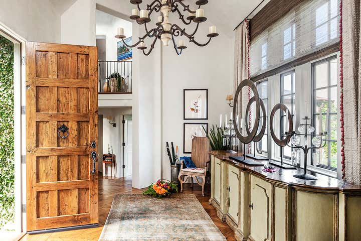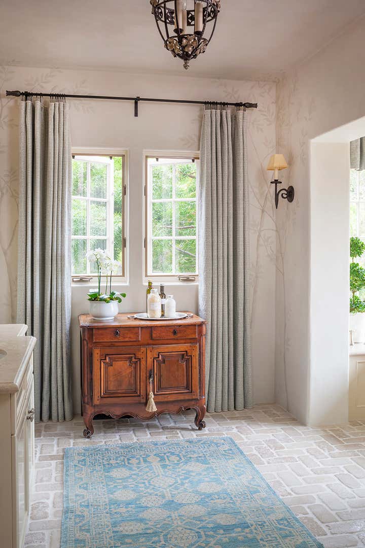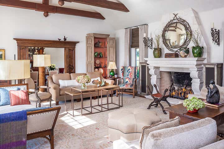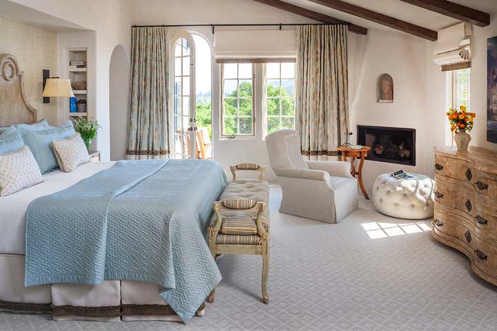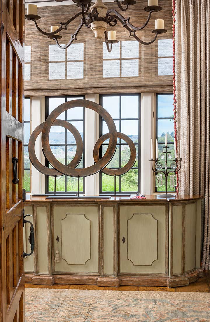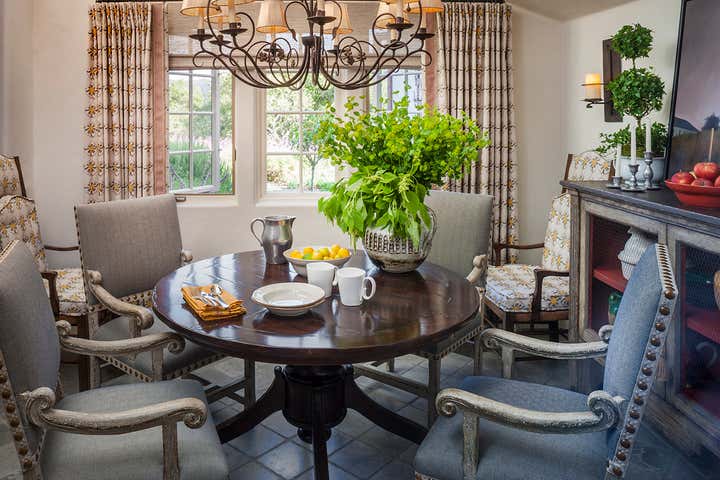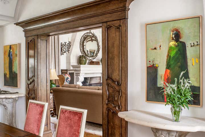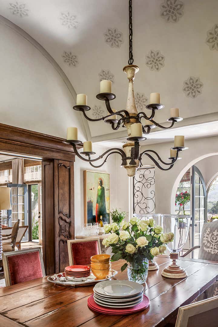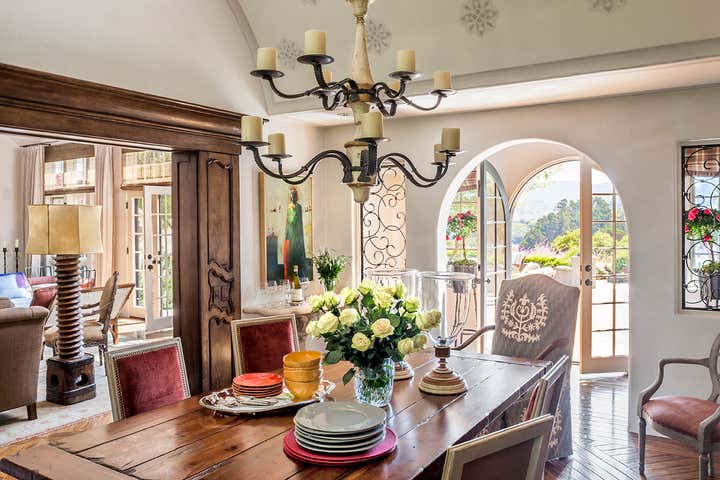 Tucked away in in the hills of Carmel Valley, California, this French Provençal-style home provides a comfortable, easygoing haven for its owners. Artisanal hand-painted frescos, textural natural fabrics harmonize with the home’s architectural details. A mix of antiques and custom bench-made furnishings makes for a rustic, welcoming aesthetic.