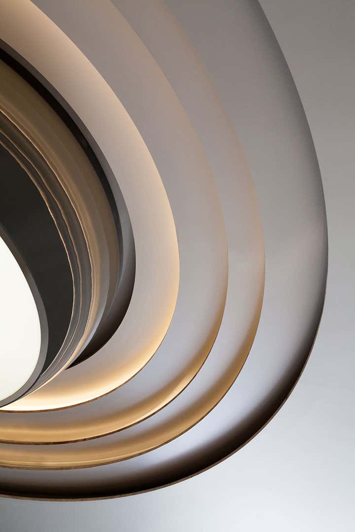 Two floors characterized by the rigor of different tones of grey and curved lines for all the fixtures and furniture as well as for the lights.