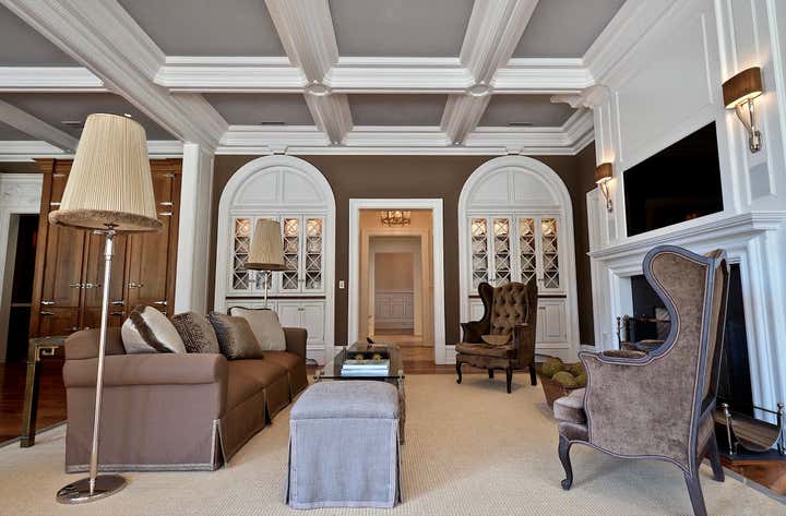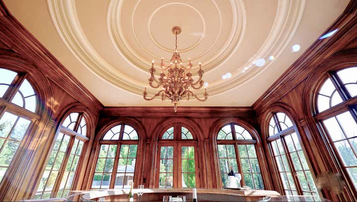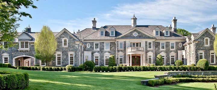 A newly constructed, English Georgian style mansion situated on the grounds of the former Frick estate in Alpine, NJ. The five-story steel and granite home has 12 bedrooms, 15 full and four half bathrooms, and amenities galore -- an indoor basketball court, a movie theater, a 4,000-bottle wine cellar, a ballroom, a conservatory, a library with a barrel-vaulted ceiling, a lounge with a circular bar, and a master bedroom wing with his and her bathrooms, enormous his and her walk-in closets (one is 450 square feet), and a sitting room. The grounds features a large pool, spa, pool house, tennis court, and rolling lawns. Michael Gross, best selling author of "740 Park" has called it "An American Masterpiece- the most spectacular new home I have ever seen."