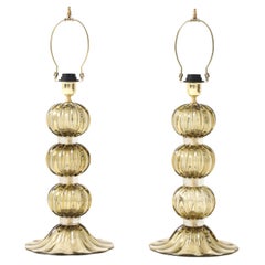 Pair of Diamond cut faceted Murano glass Table Lamps by Alberto Dona Italian