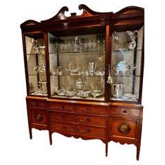 Antique Sheraton Style Mahogany Inlaid Bowfront Buffet Sideboard Console Cabinet