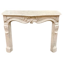 A carved Carrara Marble antique 19th century Louis XV style "Tres Coquilles" fireplace. The Cantered console jambs with scrolled panels and surmounted by a carved shell. The serpenti...