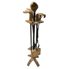 Mid century modern chrome or nickel fire tools and fire screen. The fire tools measure 30.5"H x 7"W X 7"D. The fire screen measures 31.5"H x 52.5"W. They are priced at $750 each or $...