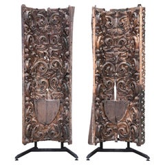 Pair of French 17th Century Weathered Oak Renaissance Ornaments