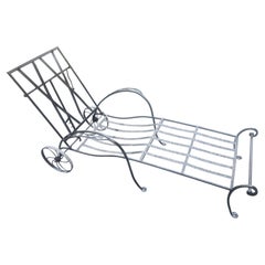 An antique handcrafted metal gate from France, executed in the classic 19th-century style and retaining its original weathered patina. The lower section is composed of beveled field ...