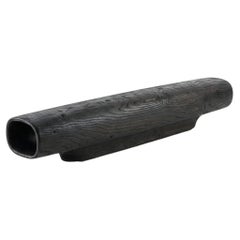 A sculptural outdoor dining table defined by a continuous, elongated top resting on two monolithic pedestal forms. The composition balances a quiet horizontal plane with a more expre...