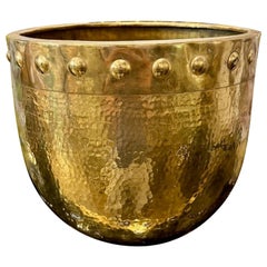 A Late 20th Century Brace Fireplace Footed Fuel Bucket with beautiful Hammered texture. Measures 17" in width, 11.5" in depth and 13"" in height, 19" height with handle.