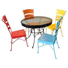 Italian 20th Century Iron Garden Set with 6 Armchairs and Round Table