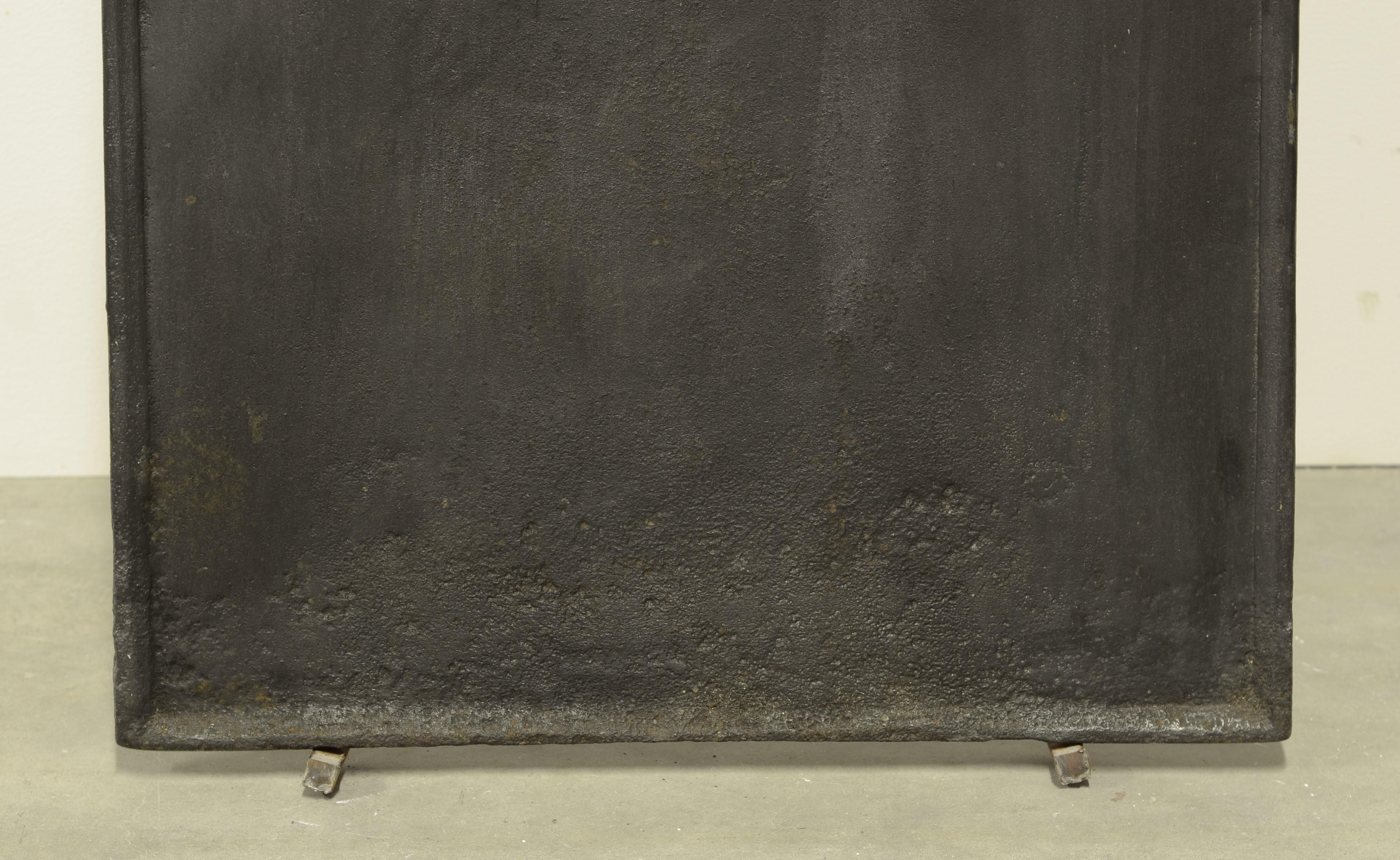 The fireback is made of cast iron and has a black / pewter patina. It is in a good condition and does not have c...