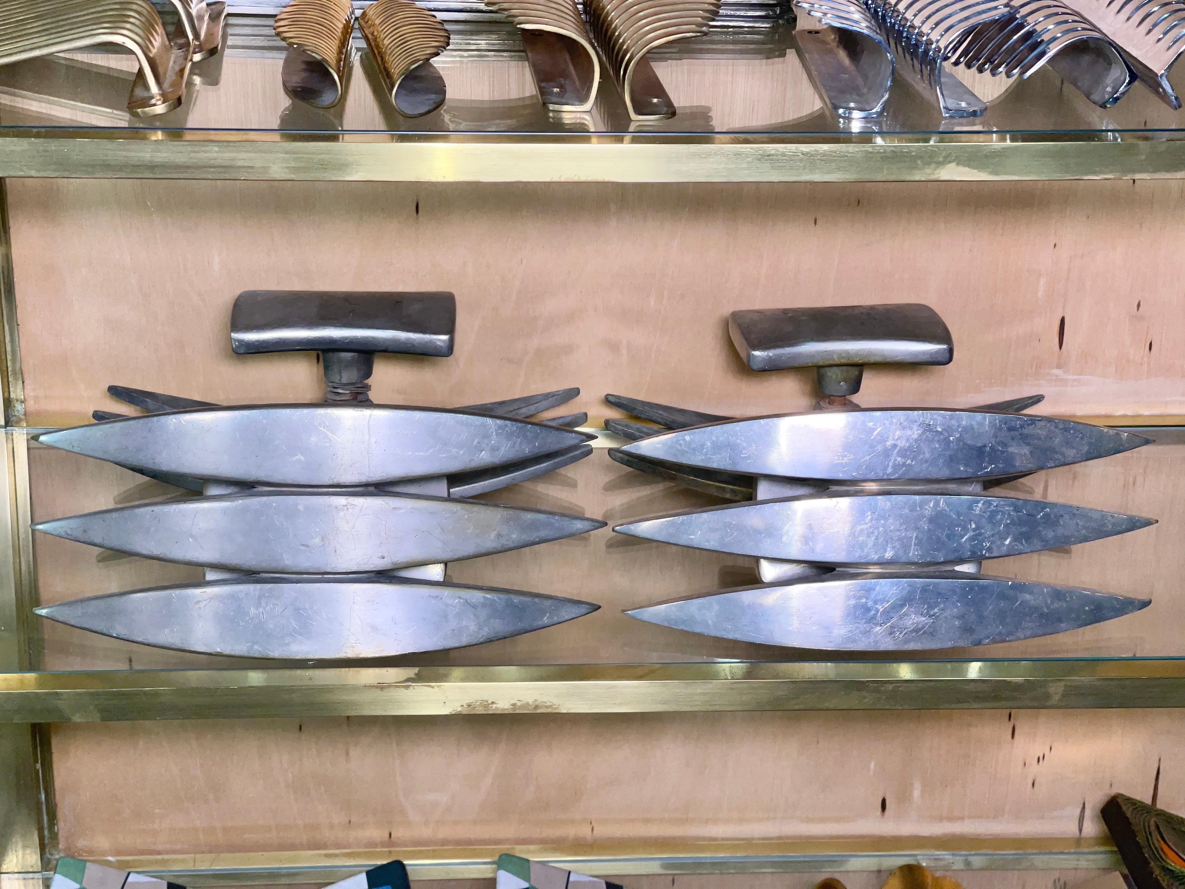 1950s Set of flared wings Italian Sculptural hardware Brass Door Pulls Drawer handles.