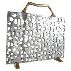 Andirons keep the logs off the floor of the fireplace so air can better circulate and keep the fire bright. An andiron, importantly, will prevent a burning log from rolling out of a fireplace and keep a fire burning evenly as well as prevent any mess from accumulating. Some andirons are simple iron brackets to elevate the wood, but others are more ornate baskets that introduce a touch of luxury to the fireplace.