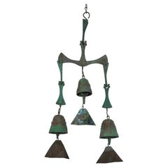 For your meditation , or special garden display comes this handsome 25 inch tall bronze bell. Its original old and natural dark green patination belies its importance and rarity.