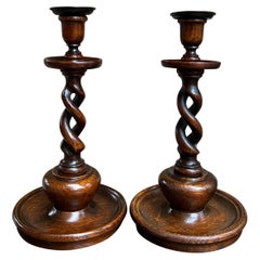 English Jacobean Style Oak Sideboard w/ Barley-Twist Legs