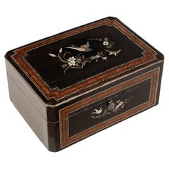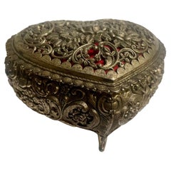 Antique Vintage Ladys Black Forest German Jewelry Box Casket Carve Pheasant Bird