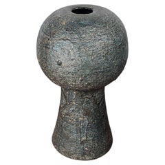 Vintage Space Age ceramic vase by the Greek ceramic artist Nikos Dazelidis. 1960s to 1970s. Sculptural form with a hole, matte rough surface. Signed on the bottom. Very good conditi...