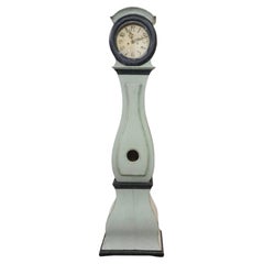 Art Deco Walnut Floor Clock w/ Deco Numeral Dial and Black Lacquered Base