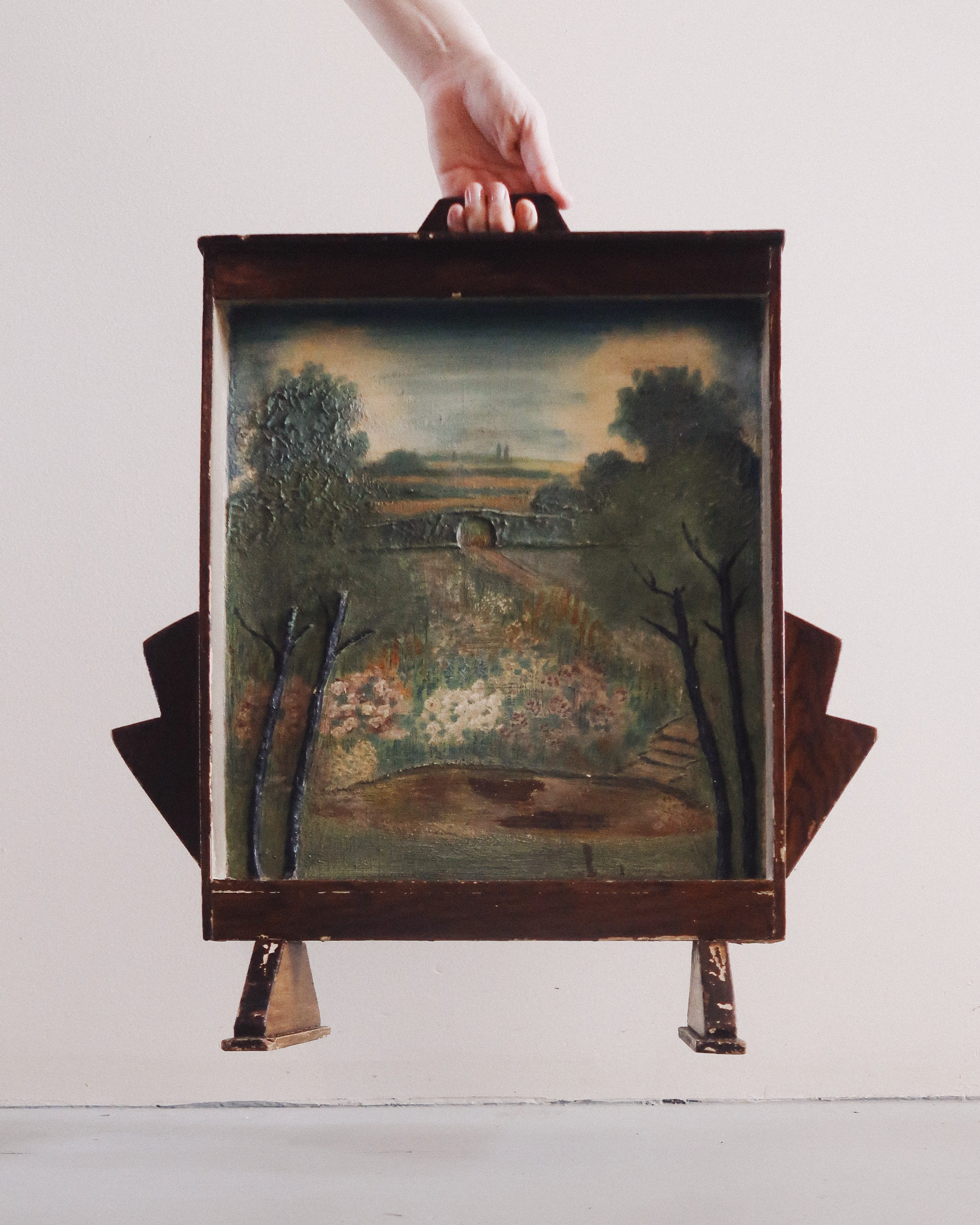 An honest box with a little bit of drama. This late 19th-century oak carpenter’s chest is all about substance and soul. Dovetailed corners, chunky iron handles, and a brass lock plate that’s aged like a good leather jacket. The carved molding detail gives it just enough polish, while the surface wear—rings, scratches, and scuffs—reminds you it’s lived a life. One of the hinges is a little loose, but still functional (just like most of us). Stash your tools, your trinkets, or the stuff you want hidden but close at hand.