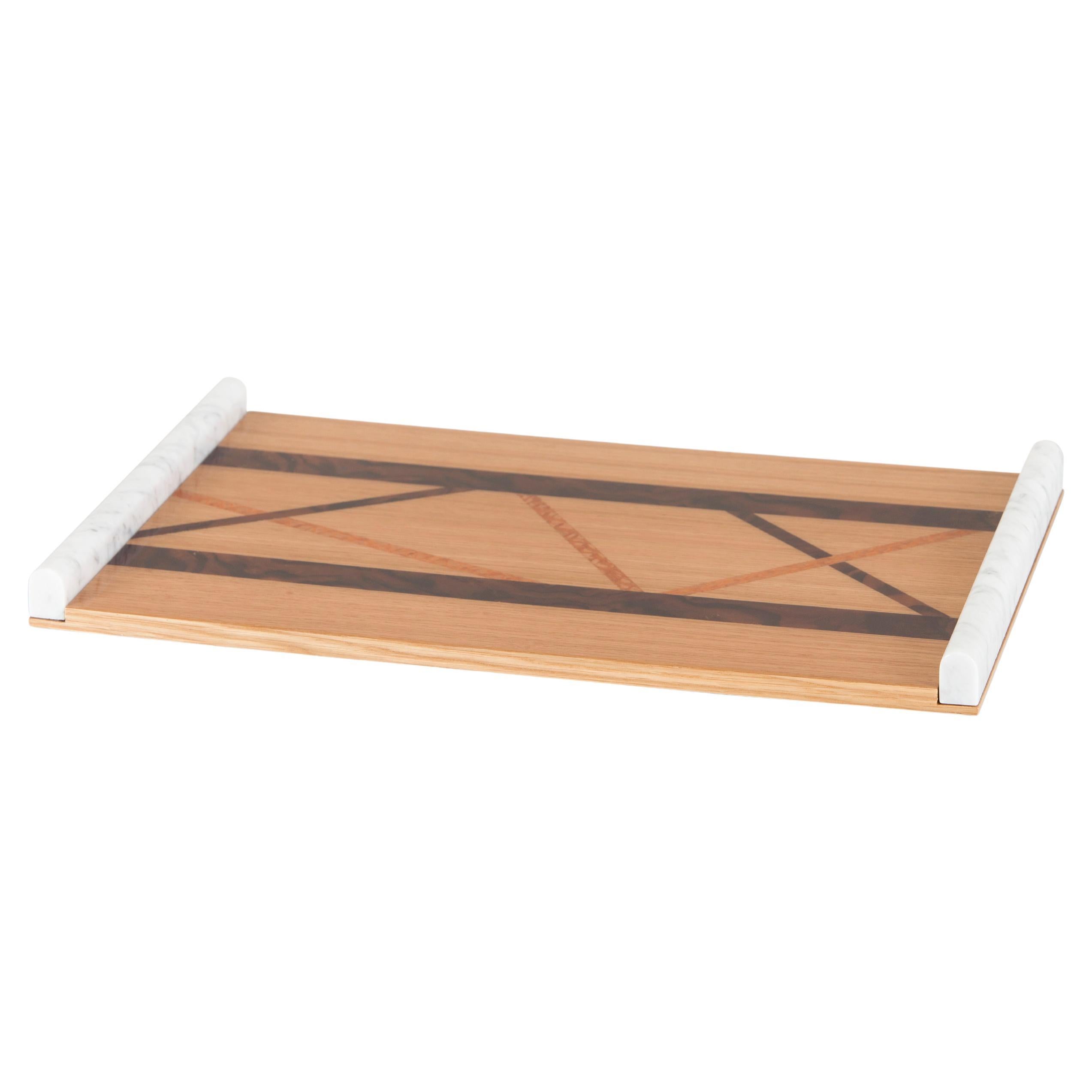 Modern Serving Tray Calacatta Marble Oak Handmade Portugal Lusitanus Home